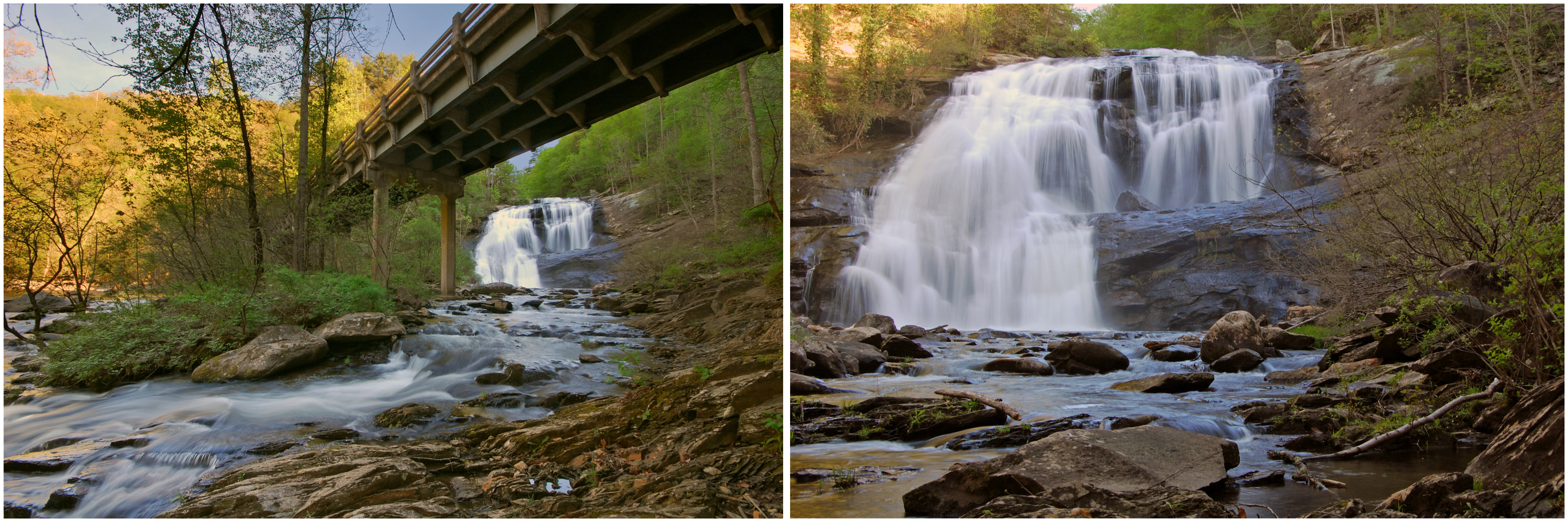I returned to one of my favorite waterfalls yesterday. The first time I visited them was in early spring. On that visit, I really liked the wide angle shots I got.